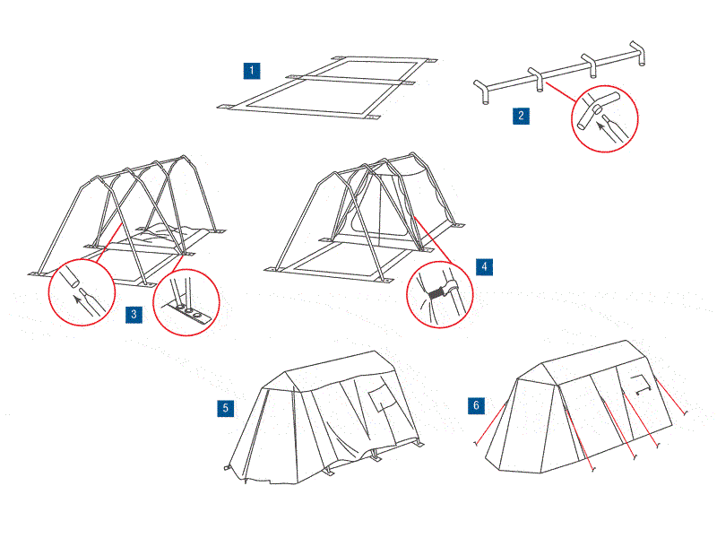 Палатка чрезвычайно устойчива даже в сильный ветер, так как на внешнем тенте расположено 8 двухточечных оттяжек. Кроме того, на коробах вентиляции имеются еще шесть обычных оттяжек. Оттяжки можно регулировать по длине. Оттяжки яркого цвета, чтобы их было видно даже ночью. Также необходимо закрепить палатку колышками по периметру, используя петли как на палатке, так и на юбке.