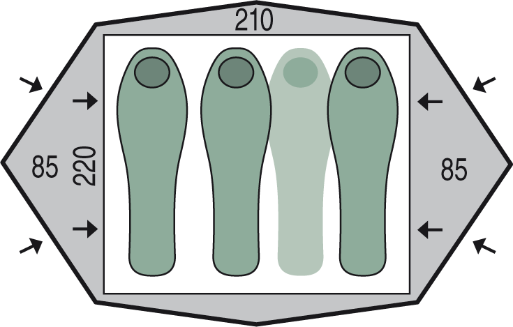 Размеры внешней палатки – (85+210+85)x220x125 см