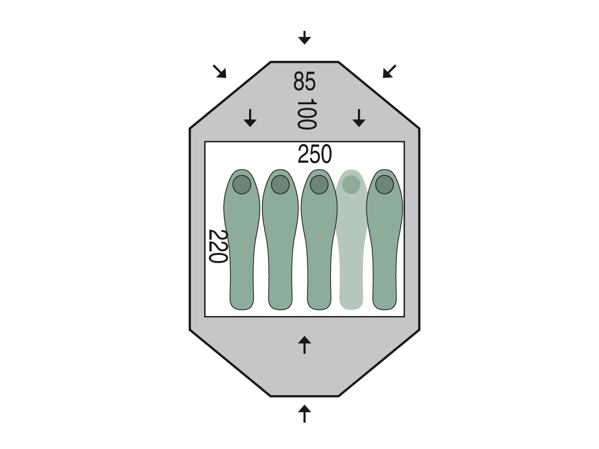 Размеры внешней палатки - (100+220+100)x250x140 см