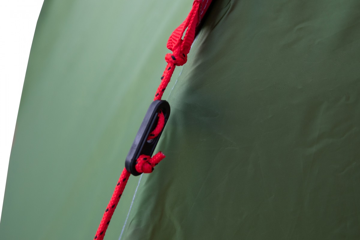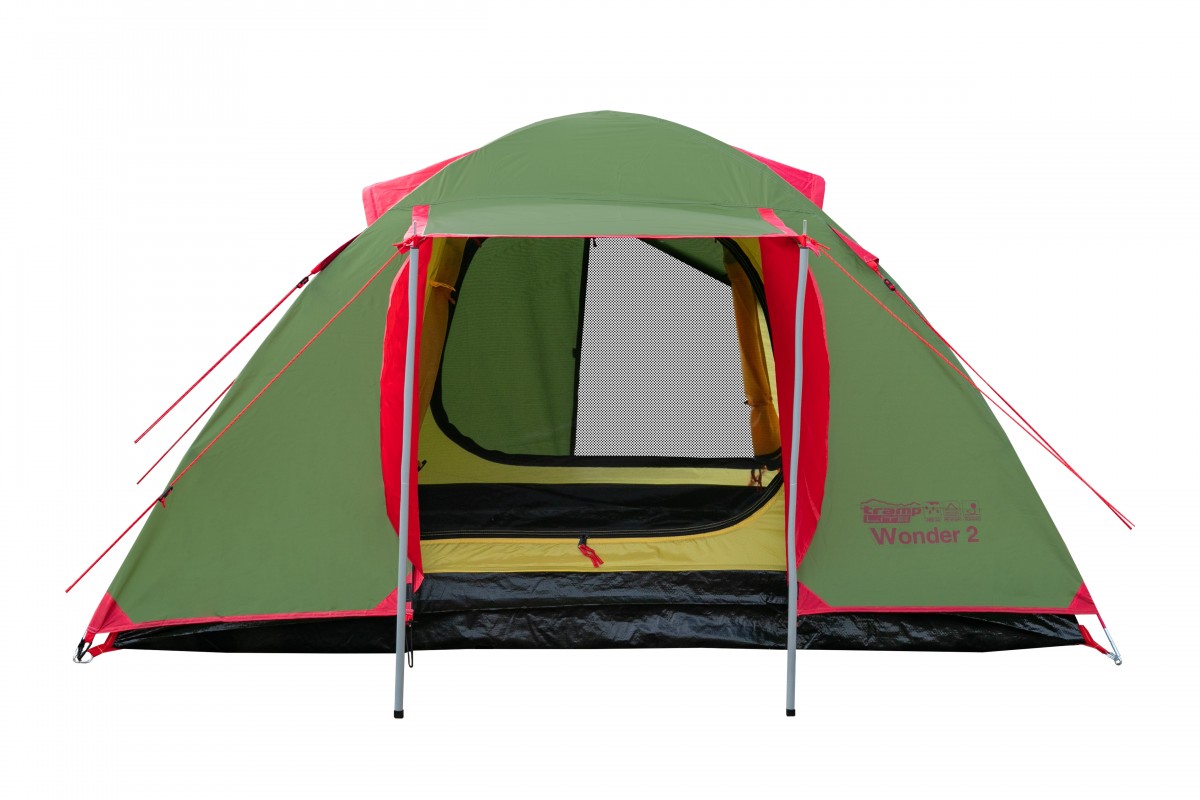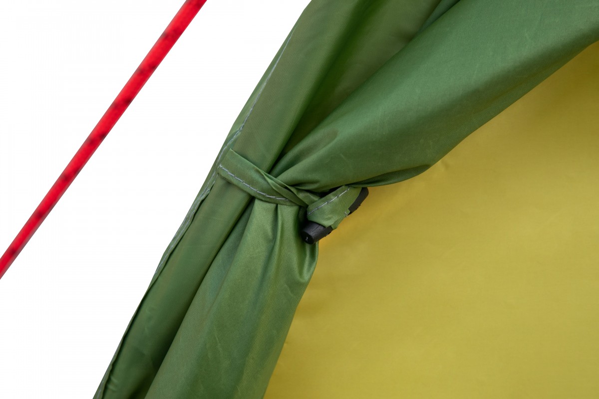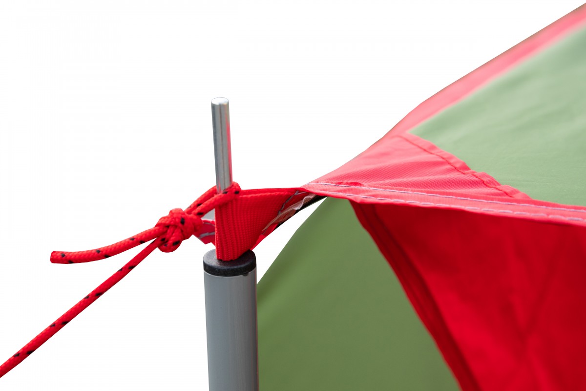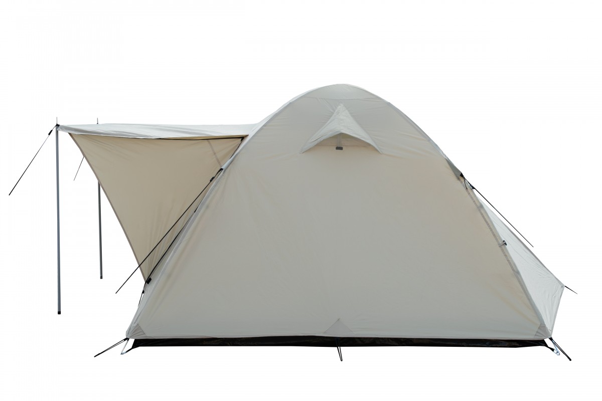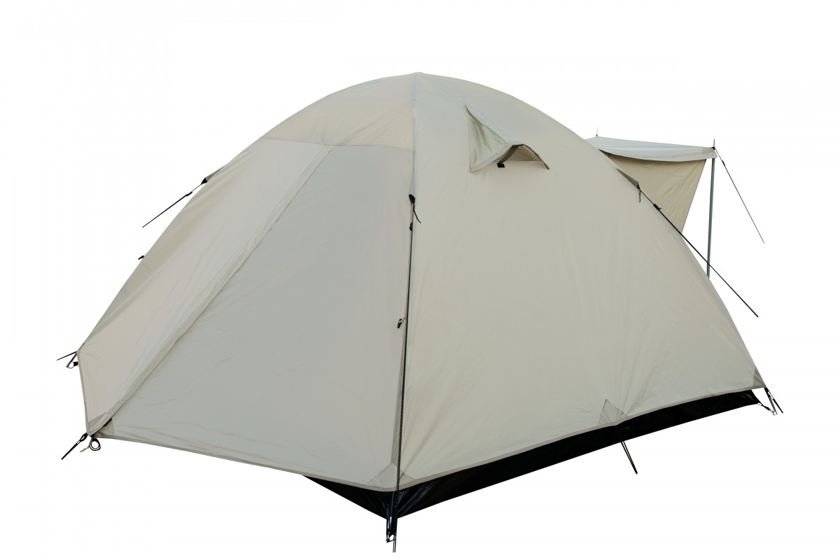 Двухслойная палатка с тремя входами. Вход спального отделения продублирован москитной сеткой. Два входа в тамбур. Возможна установка козырька на стойках перед входом. Два вентиляционных клапана. Все швы проклеены. Идеальна для туристических походов в весеннее, летнее и осеннее время.
