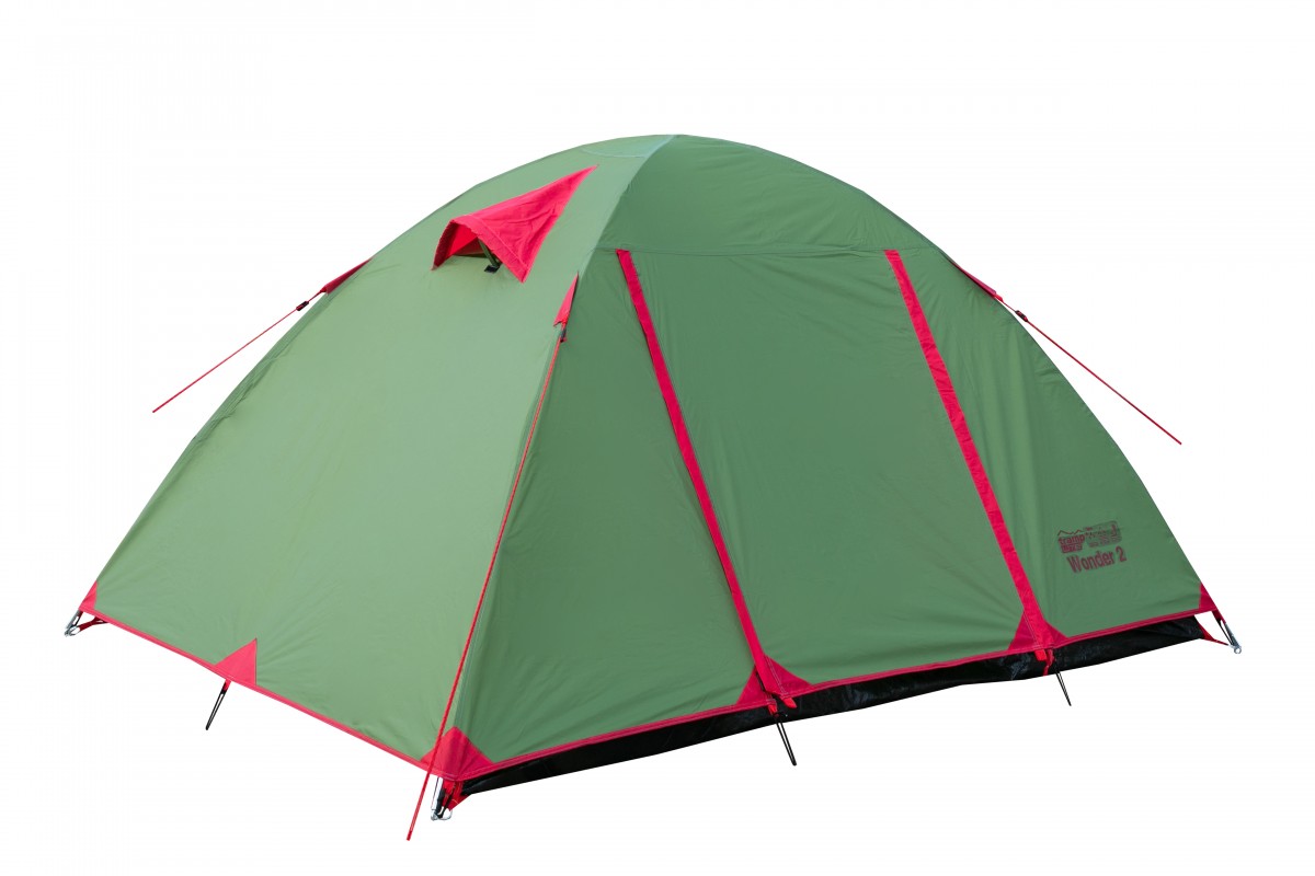 Бесплатная доставка по Санкт-Петербургу Двухслойная палатка с тремя входами. Вход спального отделения продублирован москитной сеткой. Два входа в тамбур. Возможна установка козырька на стойках перед входом. Два вентиляционных клапана. Все швы проклеены. Идеальна для туристических походов в весеннее, летнее и осеннее время.
