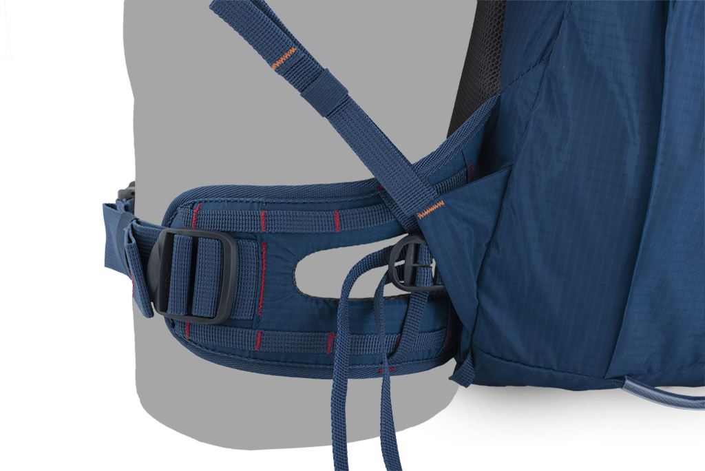 – Легкий поясной ремень для лучшей посадки на бедрах и лучшей вентиляции.