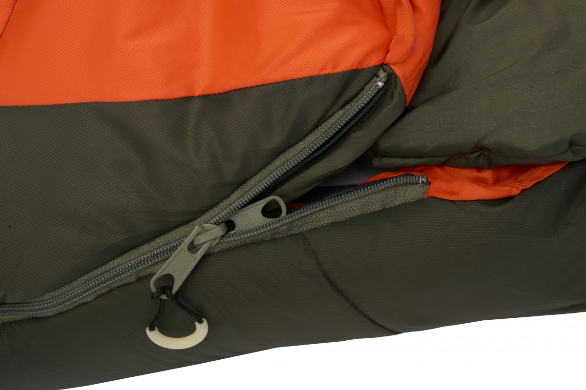 Имеется дополнительная молния на 1/3 длины – можно приоткрыть спальник, чтобы освободить руки – не вылезая из мешка пользоваться фонариком, читать или держать кружку с чаем. Также маленькая молния используется для вентиляции, когда жарко и хочется немного раскрыться.